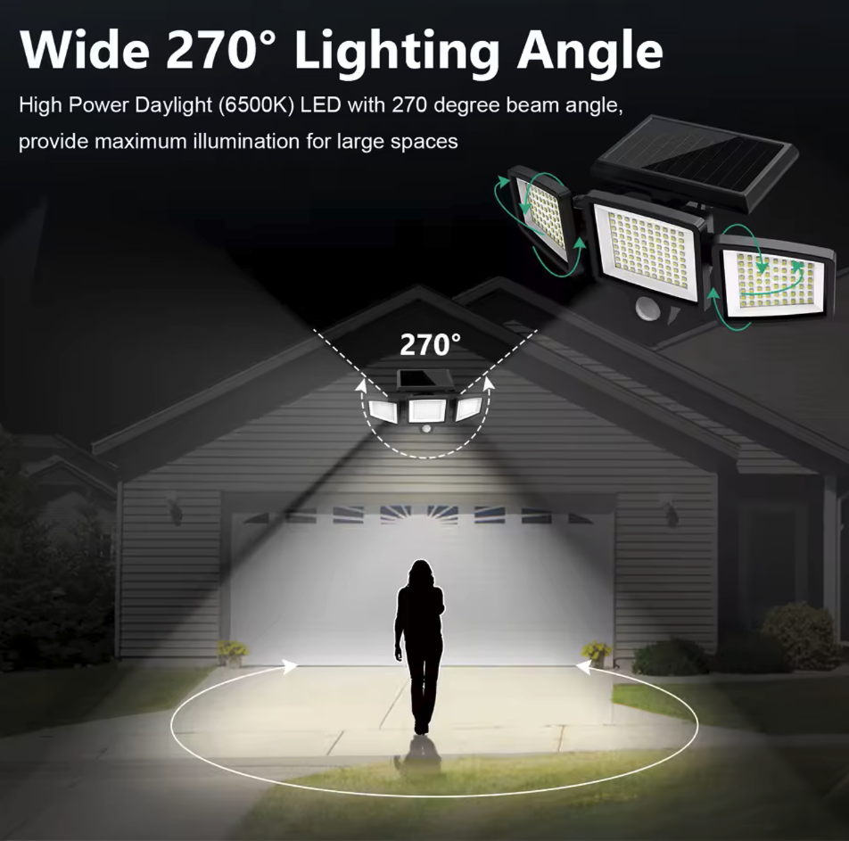 This model is equipped with over 200 high-efficiency LED beads, delivering up to 2000 lumens of brightness and a 6500K cool white color temperature — perfect for wide-area illumination of patios, garages, or pools.